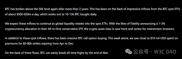 在这些资金流的推动下,QCP Capital 预测比特币价格有望在 3 月底前轻松突破历史最高点。