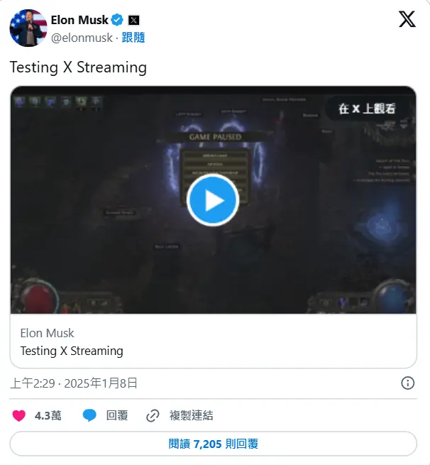 不过,动区查证了该影片,马斯克主要都在讲解流亡黯道 2 的游戏机制,并且说想要打上 Hardcore 榜 TOP10,尚未查到讲解有关 X 支付的消息。