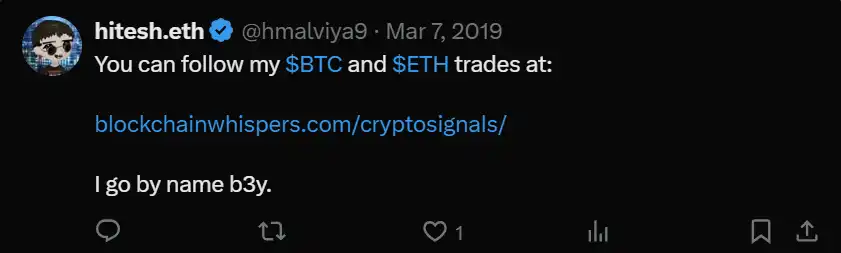 我做了三件事:开始了 @ItsBlockchain,一个记录我区块链学习的博客。将 GetXS 作为一个独立的初创公司,和一个新合伙人一起运营。在班加罗尔的一家 IT 公司做区块链顾问。我赚的钱刚够维持生计,但不足以把妻子接过来。就在这时,我想起了比特币——我在 2016 年 10 月买了 1 个比特币。三个月后,我检查了价格,发现它翻了一倍。