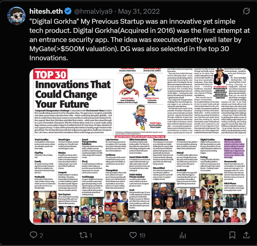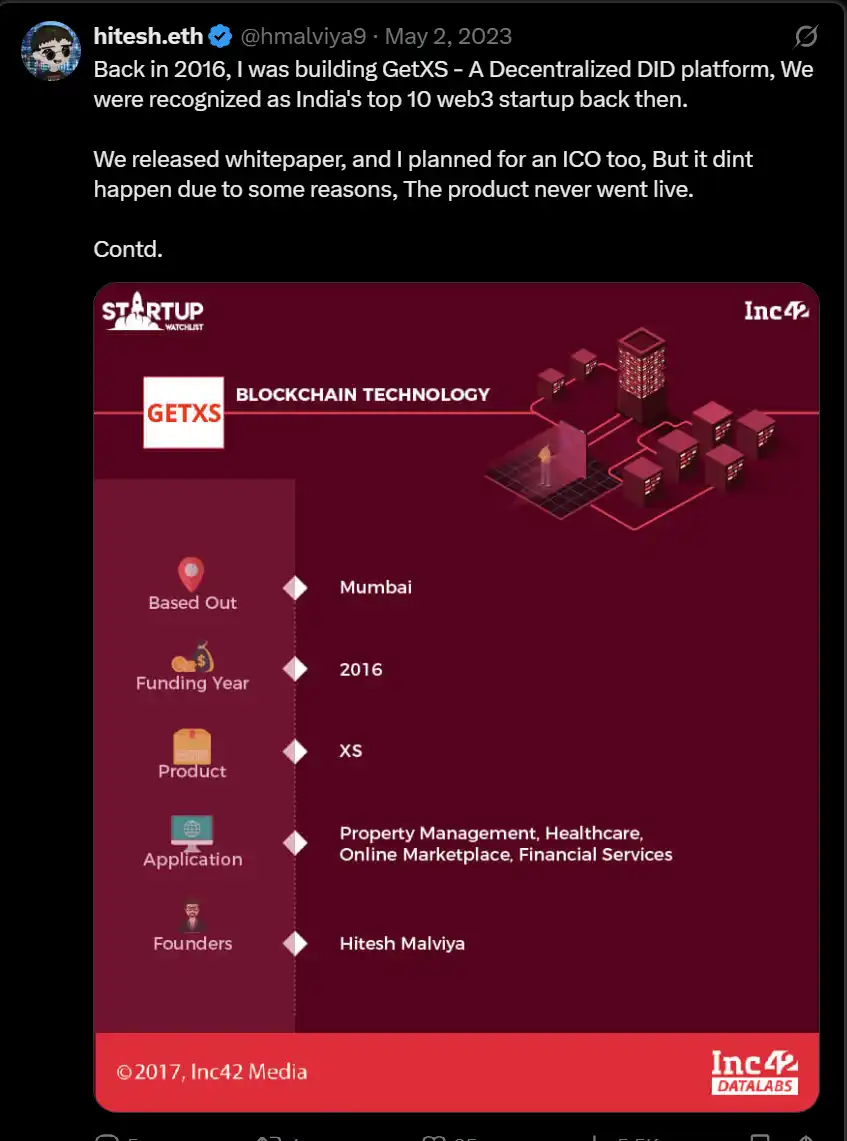 我开始向投资者推介它,但那时是 2016 年中期,印度的风险投资人对区块链投资还没有兴趣。我向天使投资人如 Anupam Mittal、Kunal Shah,甚至像 Accel 和 Sequoia 这样的巨头基金进行了推介——但他们都没有看到潜力。