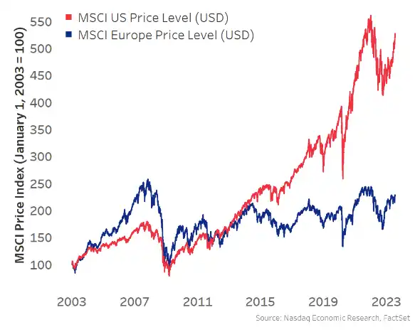 这些观点的反面是,美国是创新和技术驱动增长的中心,没有哪个国家会推翻这一想法。欧洲过于官僚和社会主义化,无法像美国那样追求资本主义。我对此观点表示同情,这可能意味着这不是一个多年的趋势,而是一个中期趋势,因为这些科技公司的估值将在一段时间内限制其上行空间。