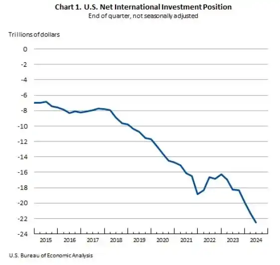 特朗普政府希望降低与其他国家的贸易逆差,这在机械上意味着减少流向外国的美元,这些美元将不会被再投资于美国资产。贸易逆差的减少无法在不出现这种情况的情况下发生。