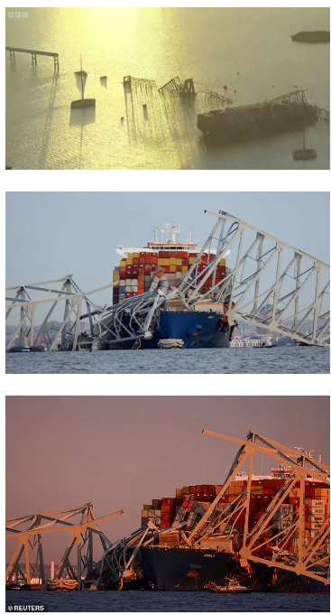 这是美国近年来最严重的桥梁倒塌事故,有人怀疑是恐怖袭击,不过据FBI表示,目前没有线索指明是恐怖袭击,涉事的货船属于新加坡籍,在撞击桥梁前2分钟发出报警,并且船上的灯瞬间全灭,失去动力和方向,导致了撞桥。