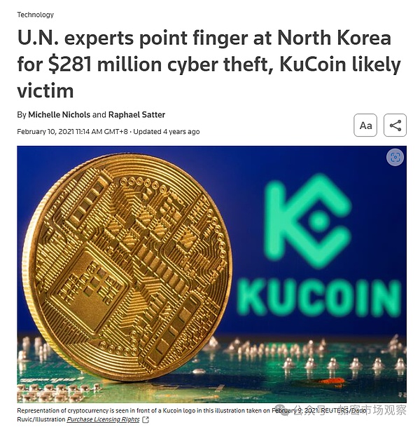 Lazarus最被我们华人所知的案子,可能要数这个Kucoin被盗案。