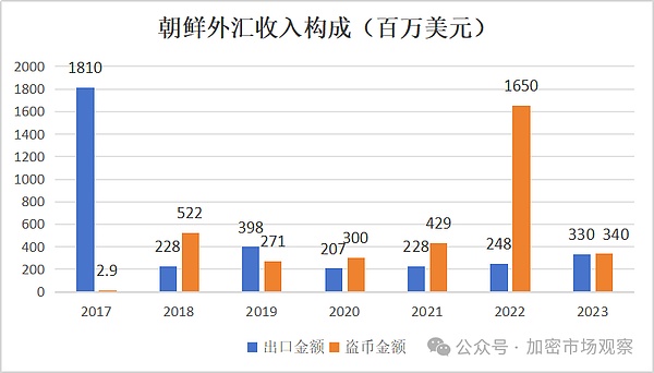 而且看看朝鲜这几年的外汇收入趋势,简直是一心一意的做加密,其他生意都不想做的了样子。