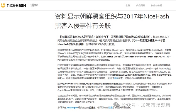 到2021年的时候,NiceHash发表博客表示,美国已经确定,当初盗窃他们比特币的正是朝鲜黑客!