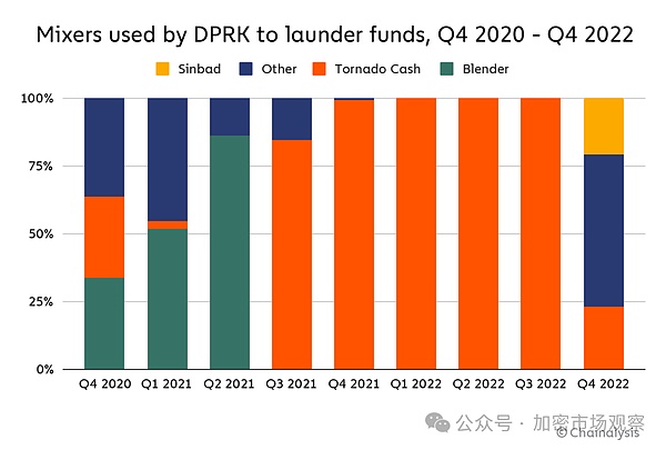 而当年混币器也几乎全是朝鲜黑客在洗钱用: