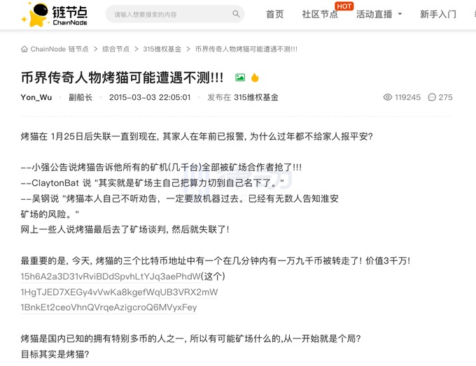 烤猫,曾被誉为「币圈第一人」的他离奇失踪。